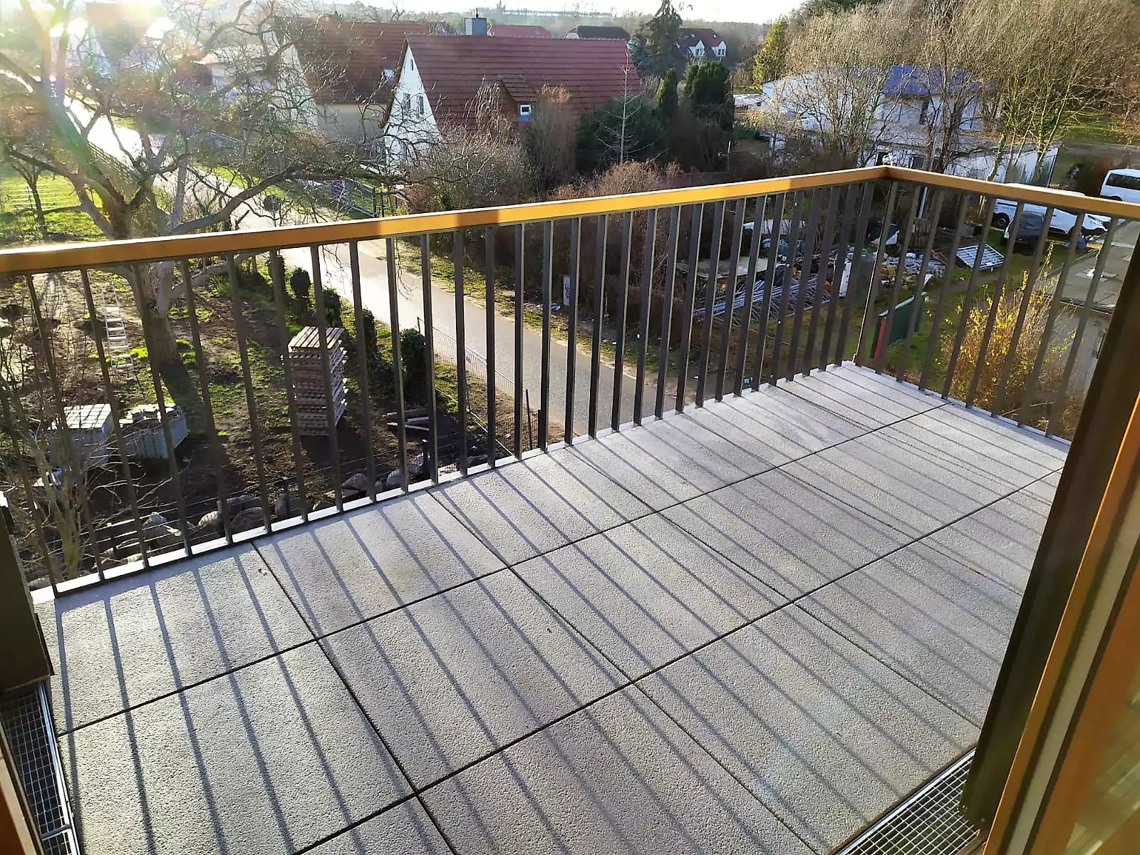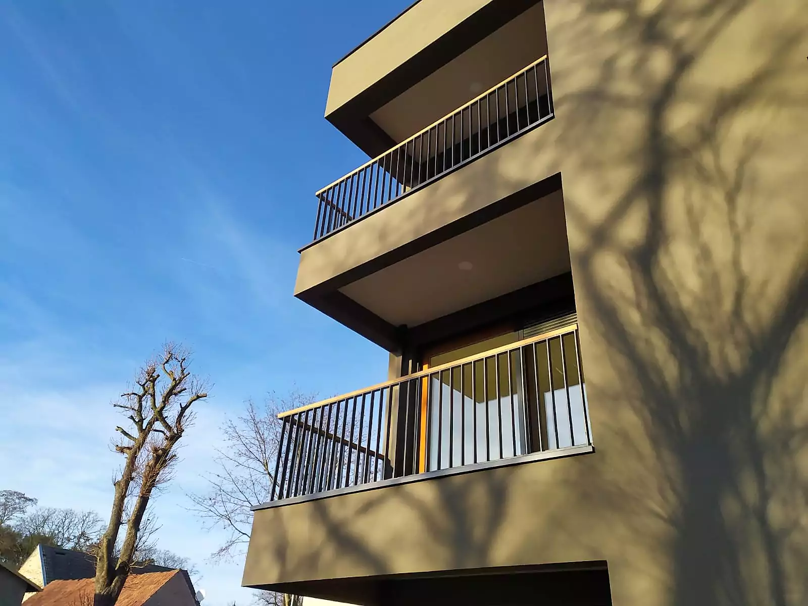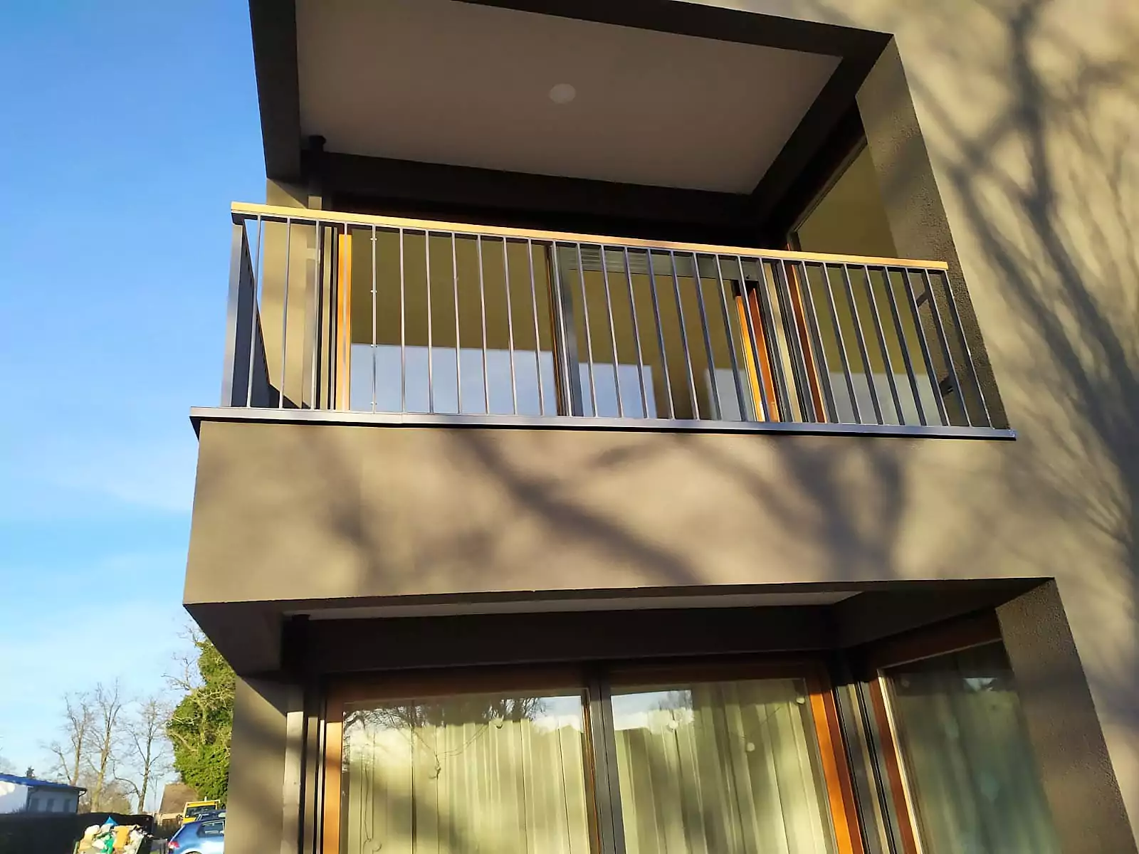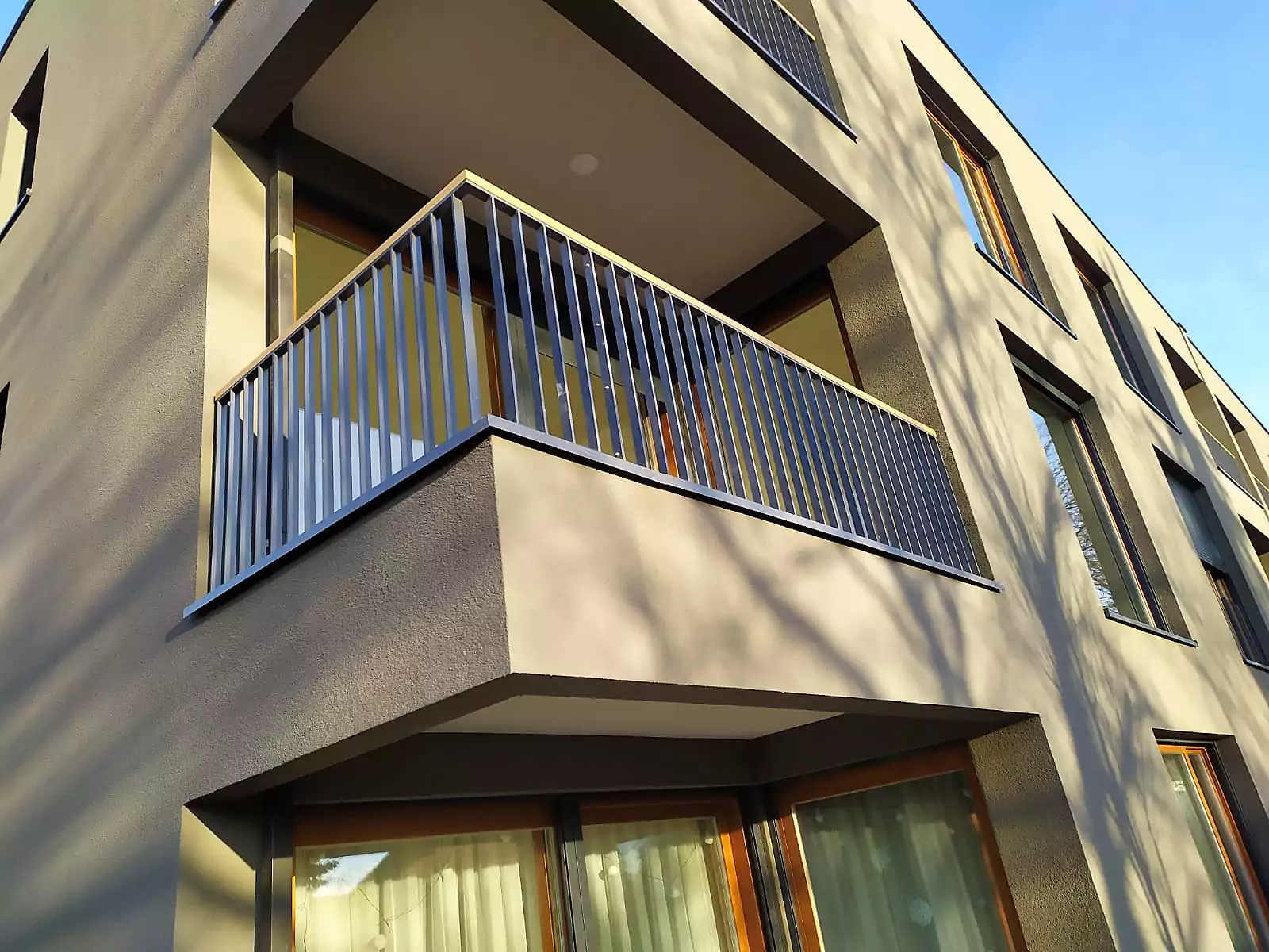 – Wykonanie, dostawa i montaż balustrad balkonowych i tarasowych ze stali ocynkowanej i malowanej proszkowo wraz z drewnianymi pochwytami,
