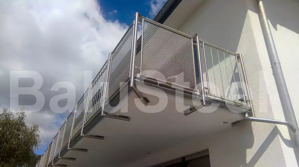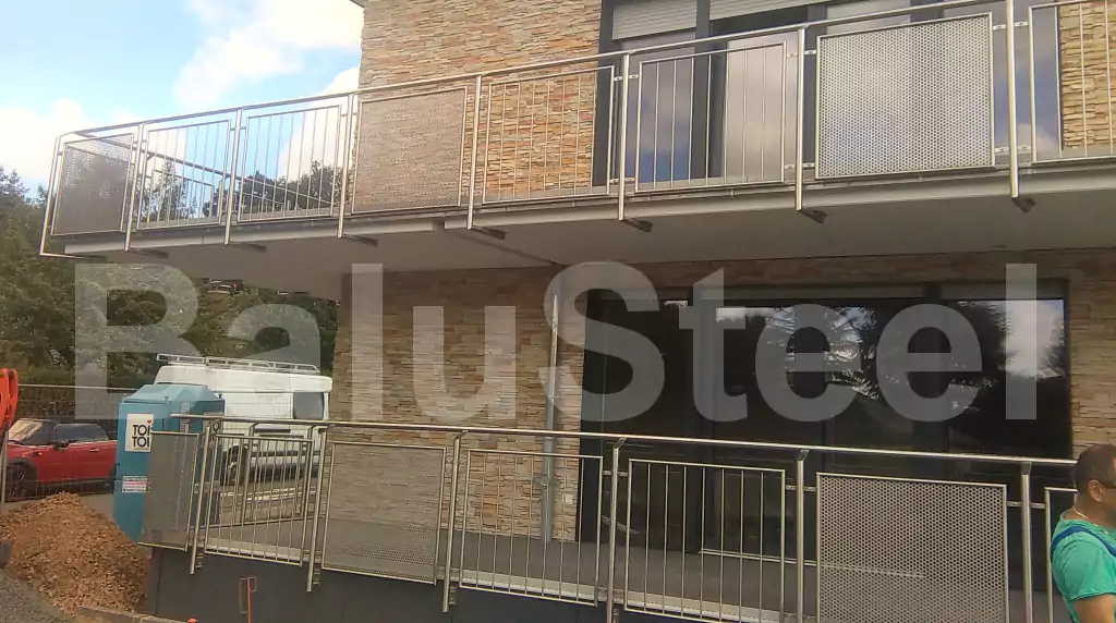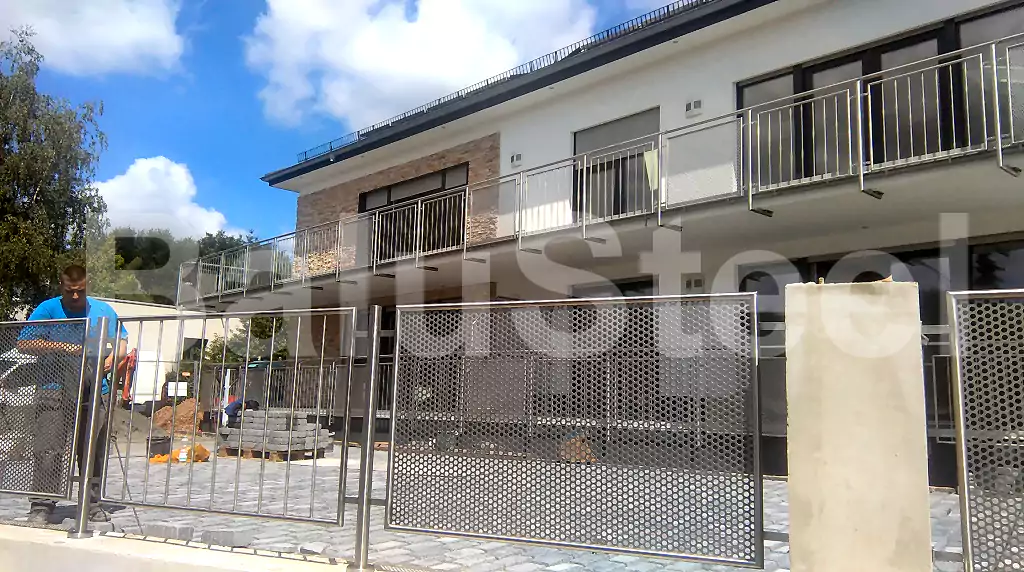– Wykonanie, dostawa i montaż balustrad zewnętrznych ze stali kwasoodpornej w gatunku AISI 316L z wypełnieniem rurkami oraz blachą perforowaną