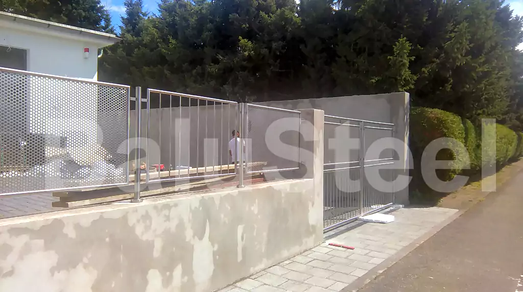 – Wykonanie, dostawa i montaż ogrodzenia ze stali kwasoodpornej w gatunku AISI 316L z wypełnieniem rurkami oraz blachą perforowaną