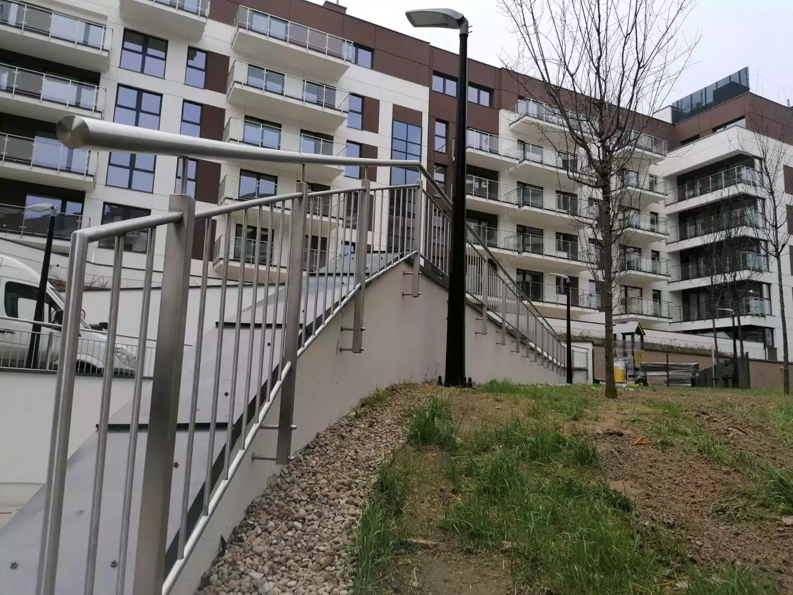 – Wykonanie, dostawa i montaż balustrad balkonowych i tarasowych ze stali nierdzewnej, z wypełnieniem szklanym bezpiecznym laminowanym i hartowanym VSG/ESG 44.2