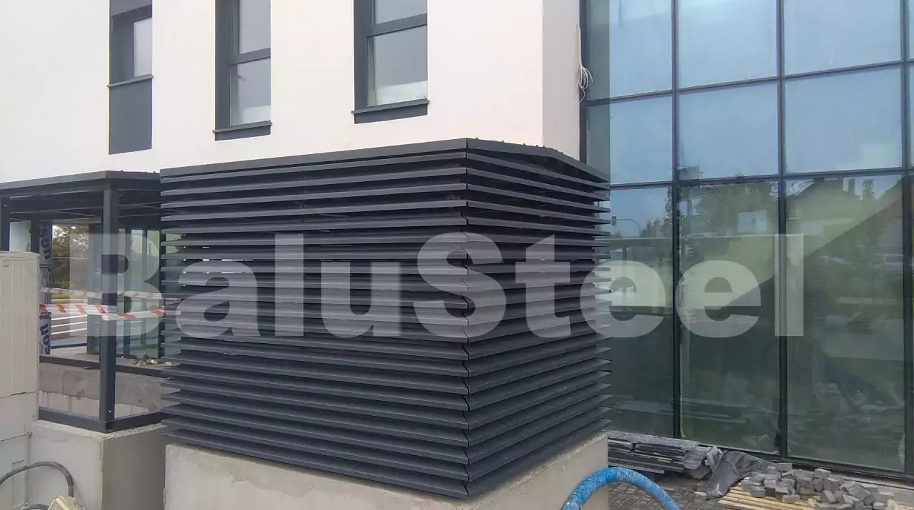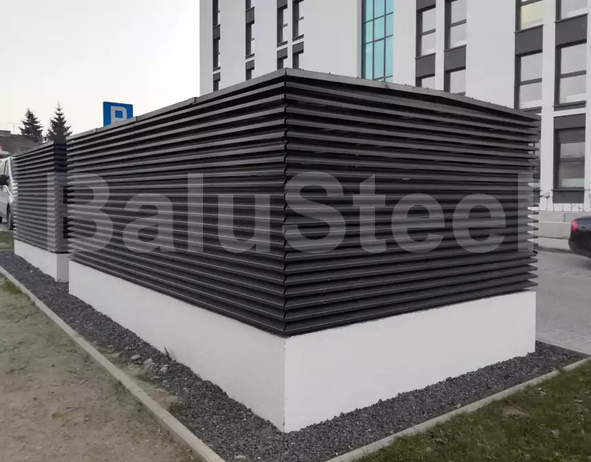 – wykonanie i montaż konstrukcji stalowych czerpni powietrza oraz ich obudowa lamelami
