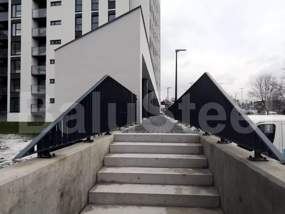 – Wykonanie balustrad wewnętrznych klatek schodowych ze stali malowanej proszkowo oraz poręczy ze stali nierdzewnej