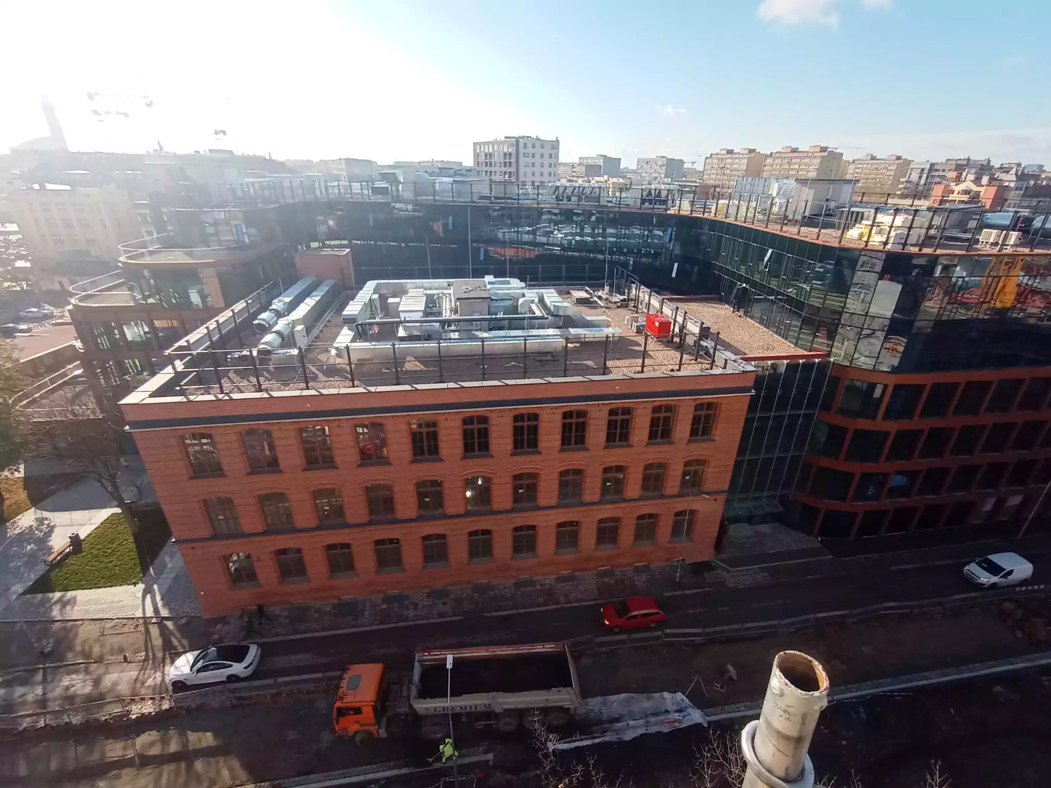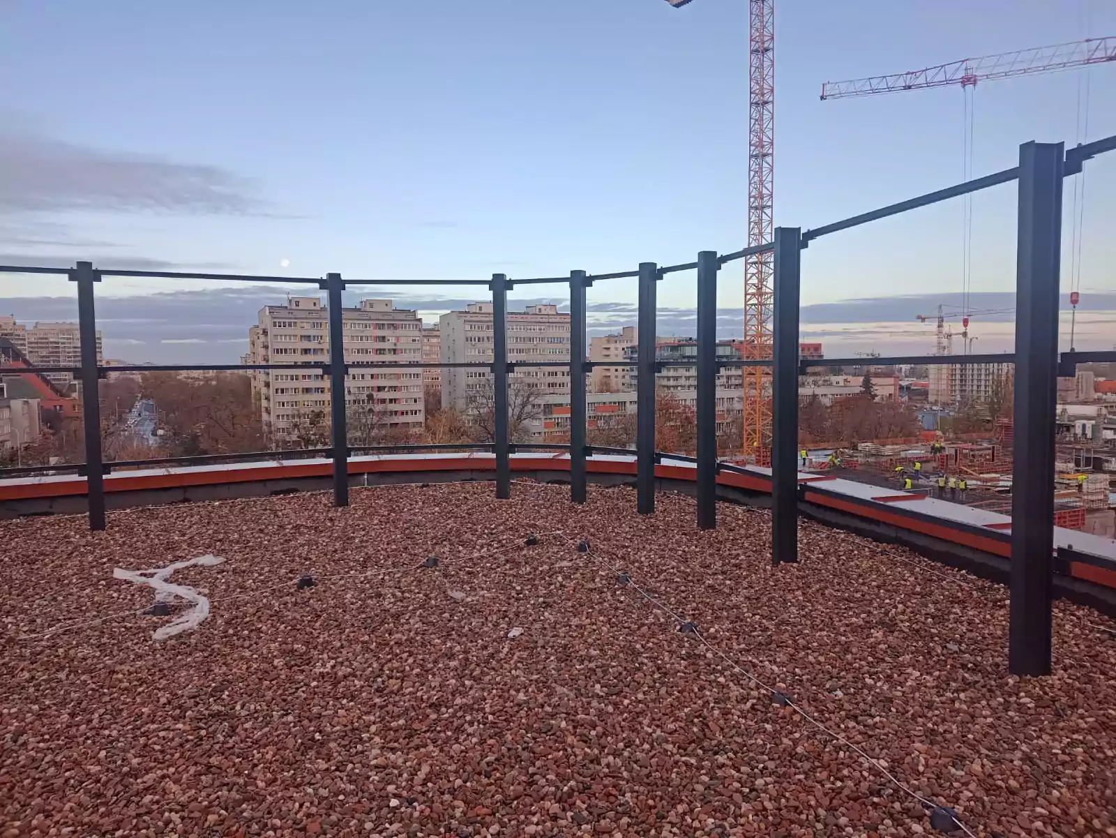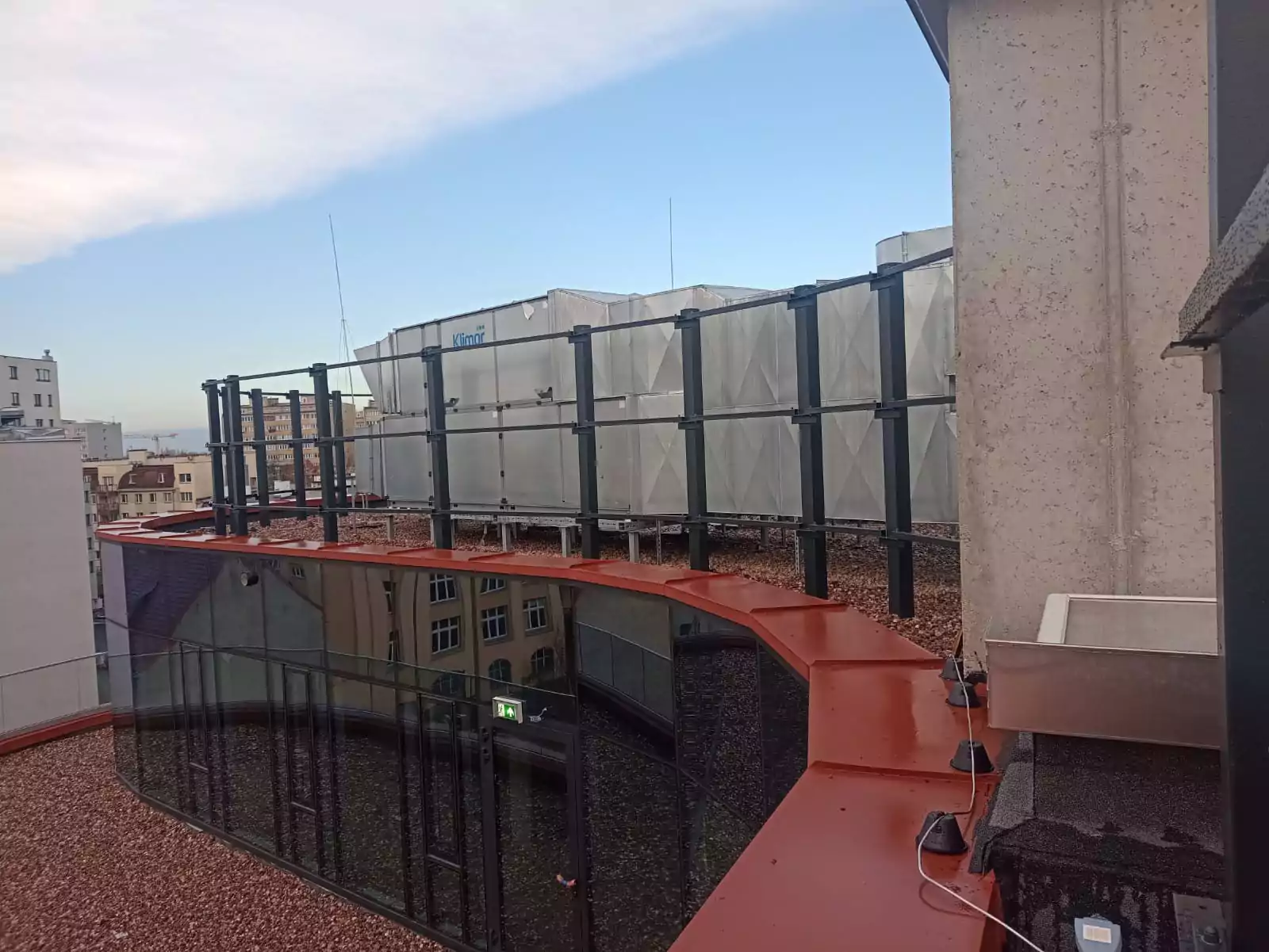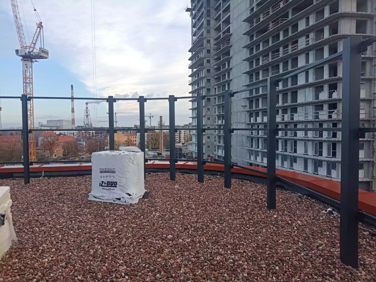 Wykonanie oraz montaż konstrukcji stalowej na dachu biurowca w formie słupów z profili 140x140mm oraz rygli z profili 50x50mm