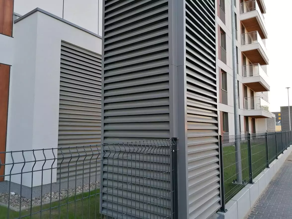– zabudowy czerpni powietrza lamelami aluminiowymi