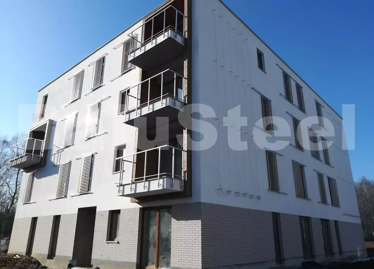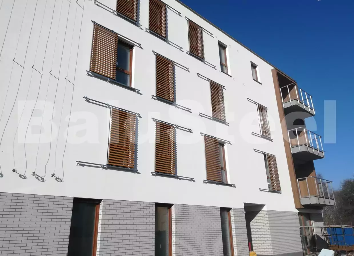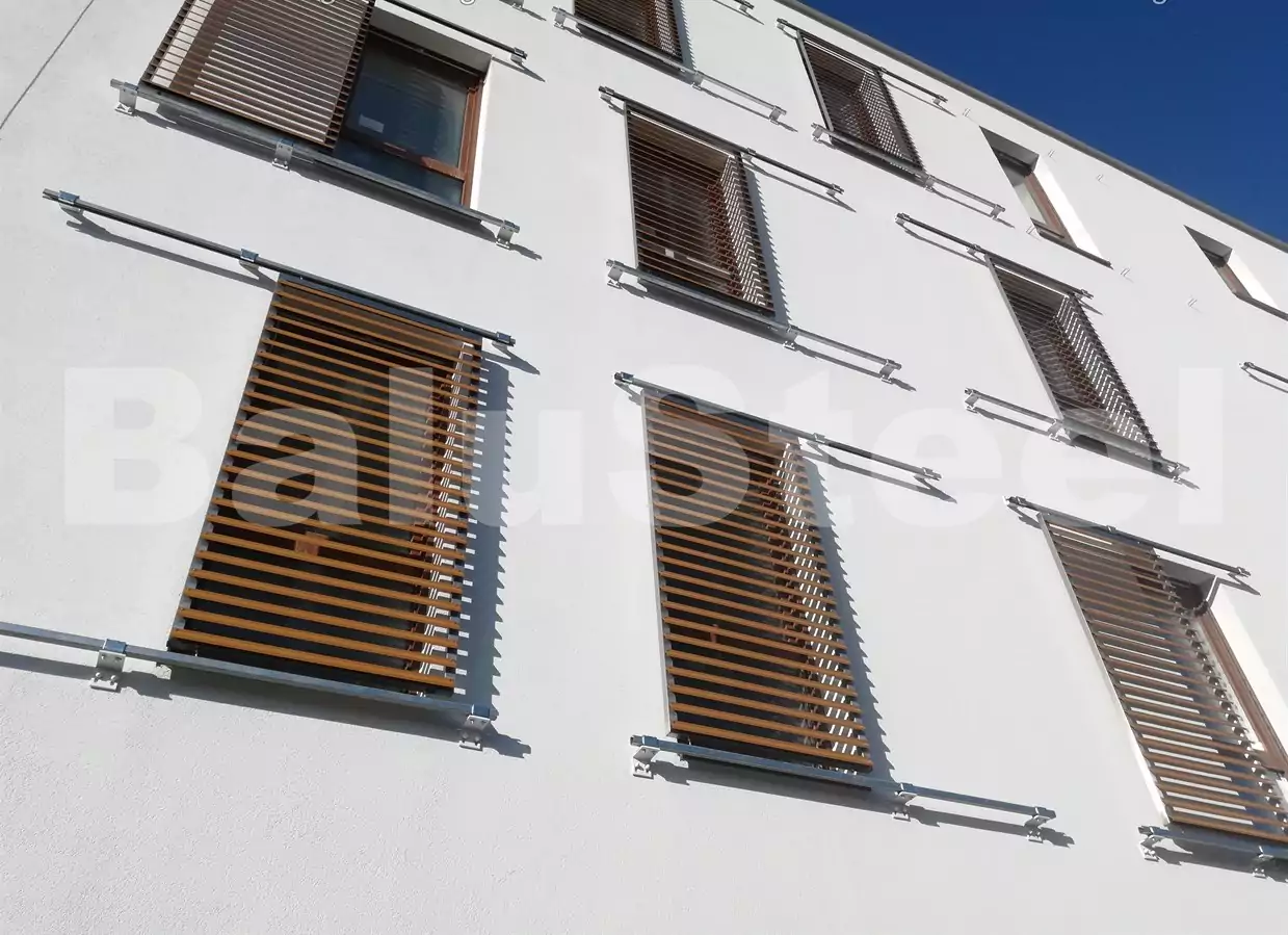 – Wykonanie 172 żaluzji przesuwnych elewacyjnych ze stali nierdzewnej z lamelami malowanymi proszkowo