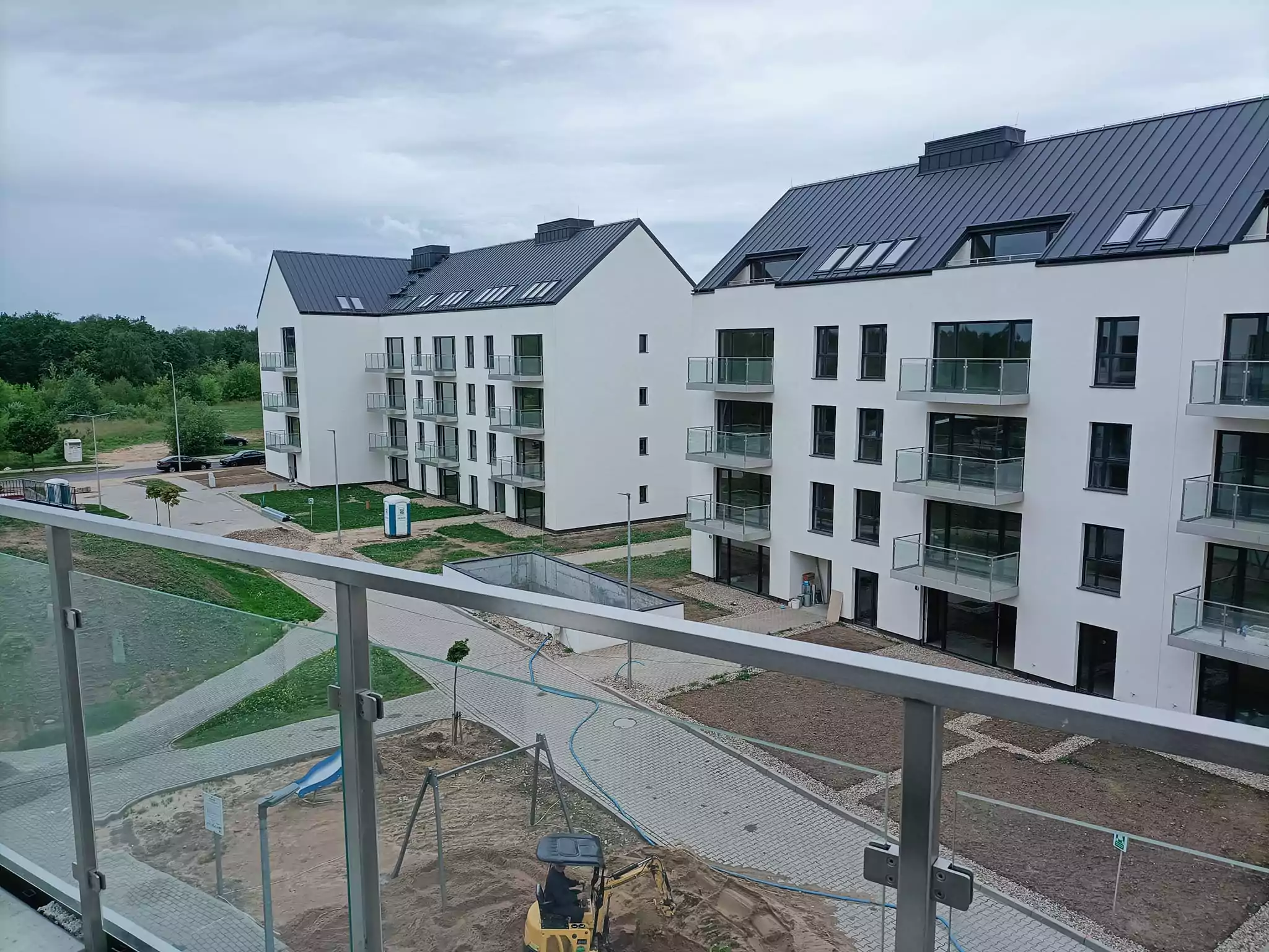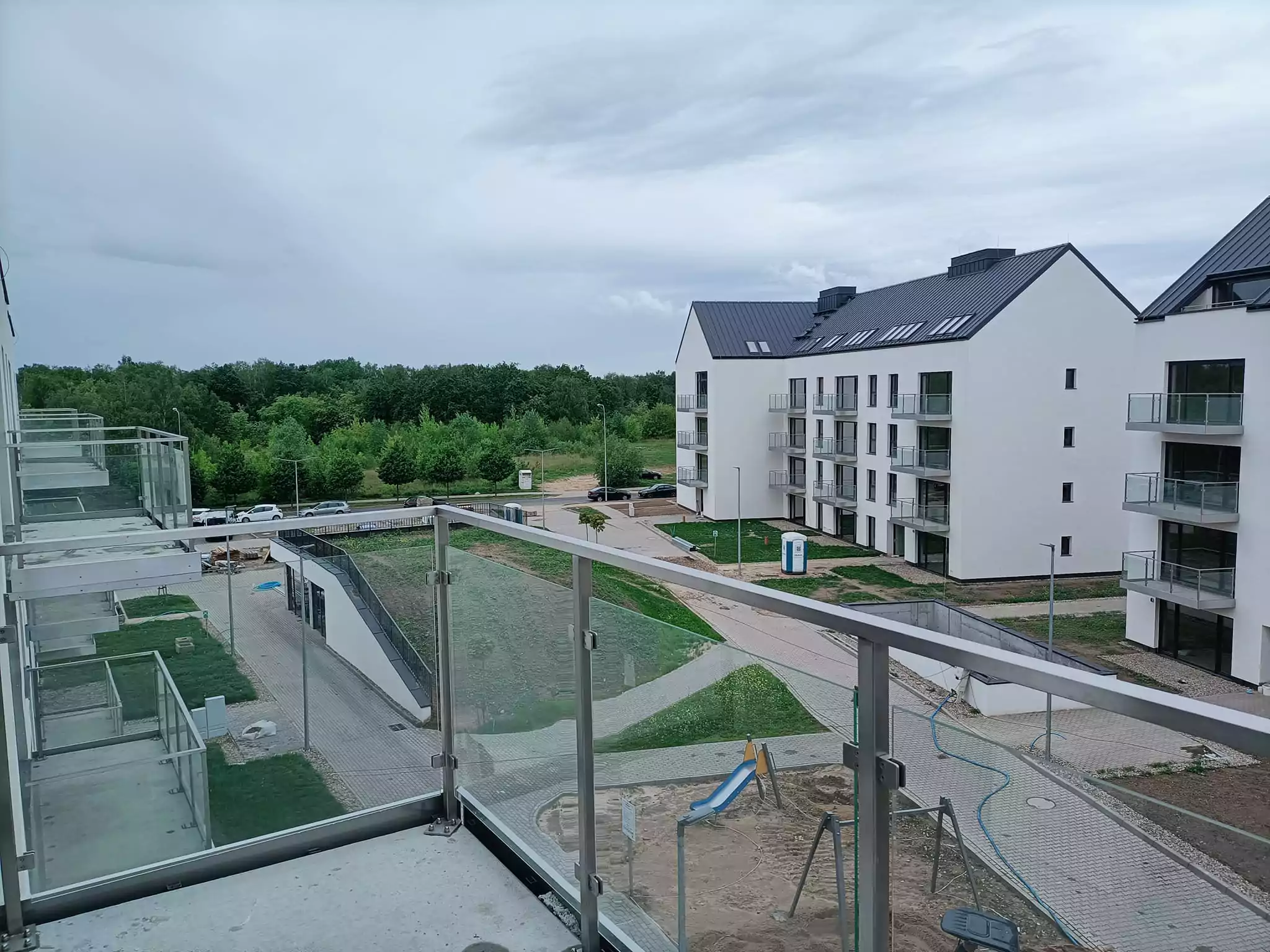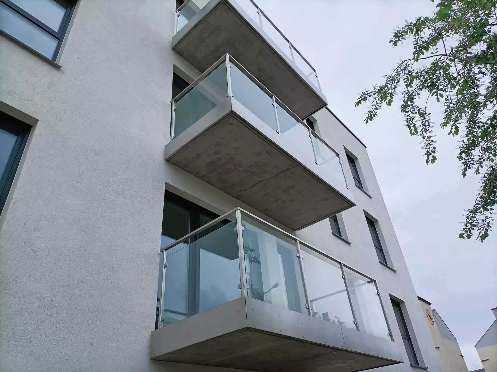 – wykonanie i montaż balustrad zewnętrznych ze stali nierdzewnej z wypełnieniem szkłem bezpiecznym VSG 44.2 plus dodatkowe maskownice ze stali nierdzewnej z blachy szczotkowanej dzięki czemyu nie było konieczności wykańczania czoła balkonów