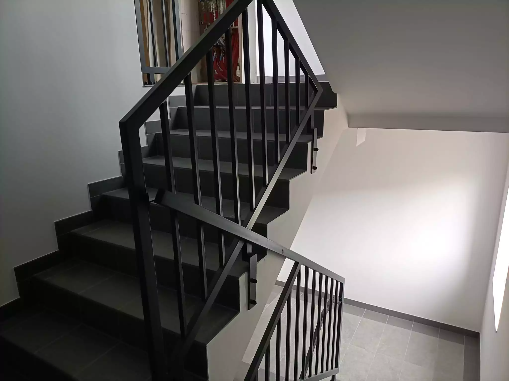 – wykonanie i montaż balustrad wewnętrznych klatek schodowych gdzie dodatkowym wyzwaniem był brak miejsca. Dzięki zastosowaniu przez naszego projektanta balustrad w jednej płaszczyźnie udało się „wcisnąć” tak aby zapewnić drogi ewakuacyjne i choć minimalny komfort dla użytkowników !